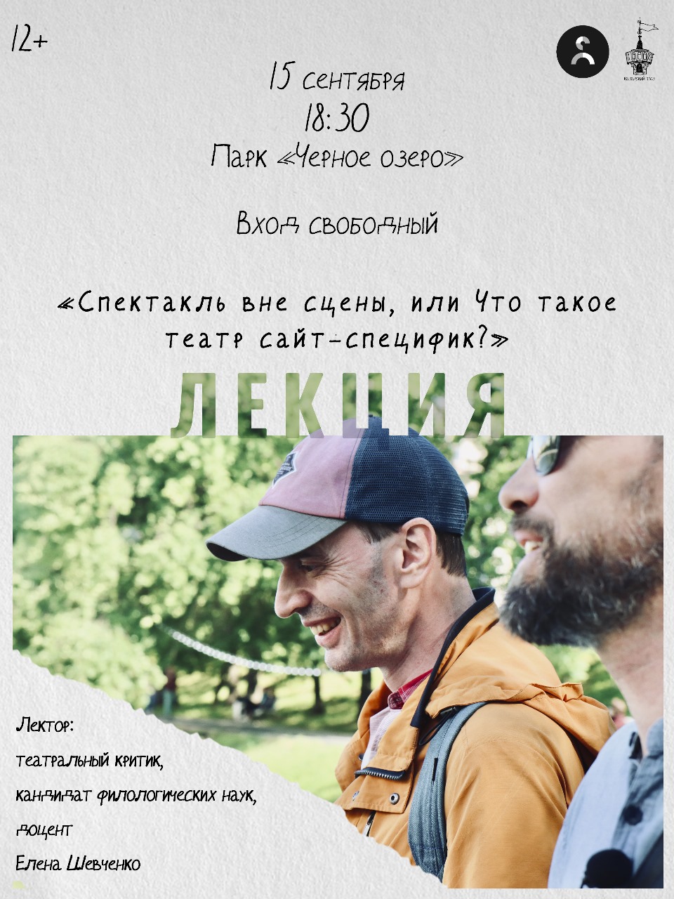 15 сентября в амфитеатре парка «Черное озеро» состоялась открытая публичная лекция «Спектакли вне сцены, или Что такое театр сайт-специфик?» В качестве организатора выступил Казанский ТЮЗ, а в роли лектора – старший научный сотрудник Центра искусствоведения, театральный критик, кандидат филологических наук Елена Шевченко.